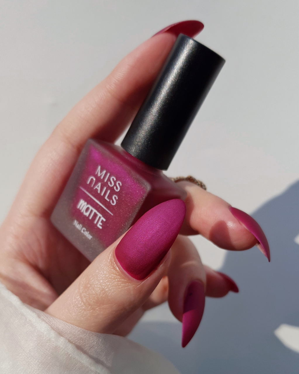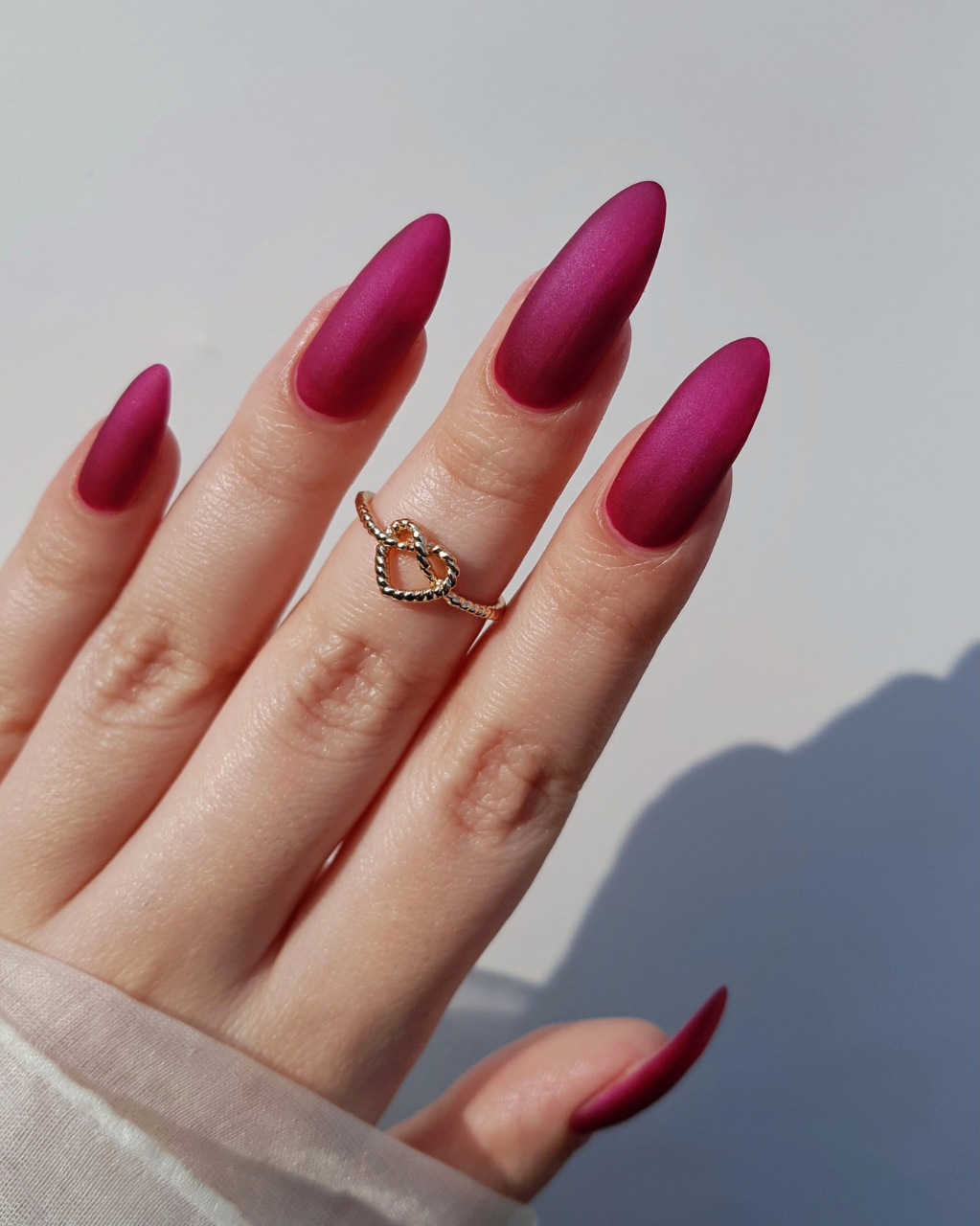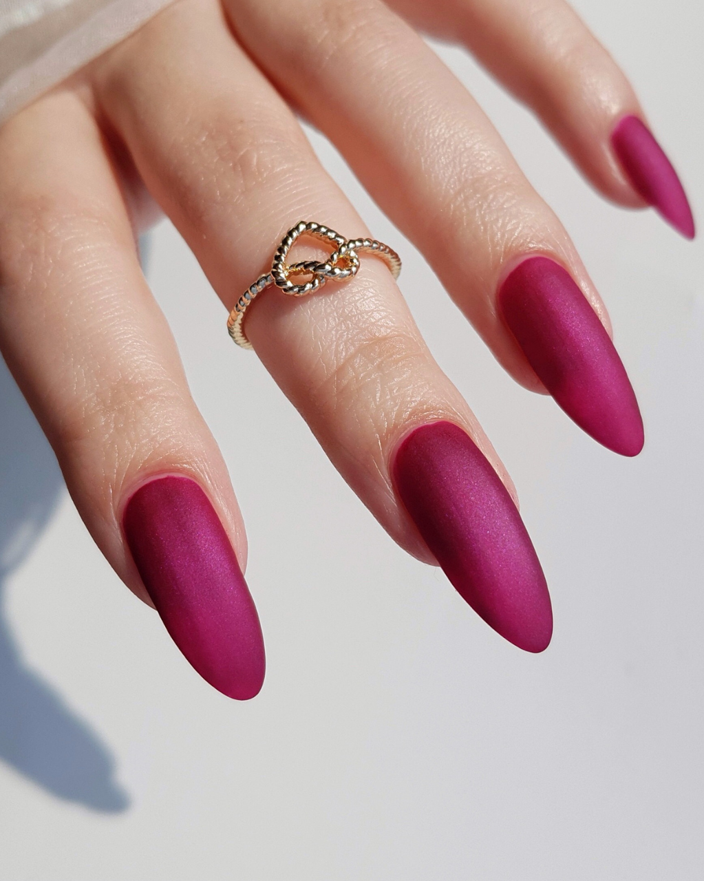 A fun purple with a hint of shimmer to keep things interesting. The soft matte finish makes it playful and still classy.