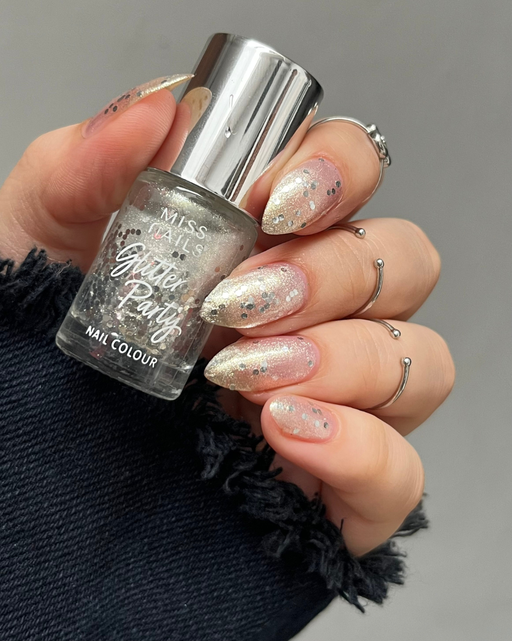 A crisp, high-shine silver packed with fine shimmer and silver glitters, is sure to turn your nails into on-the-go disco balls!