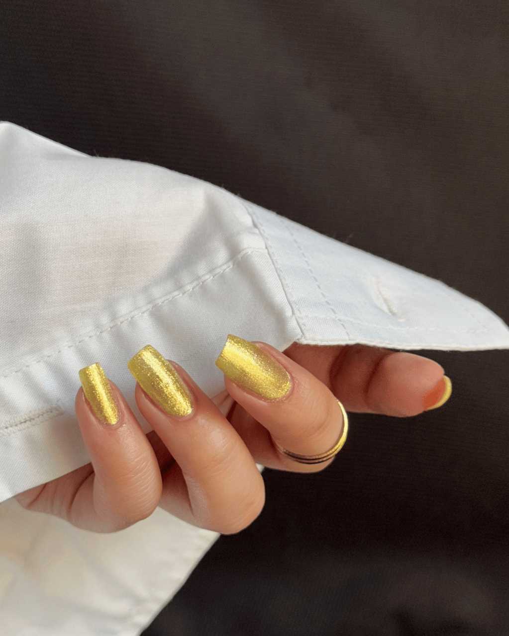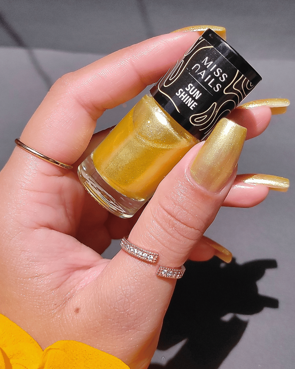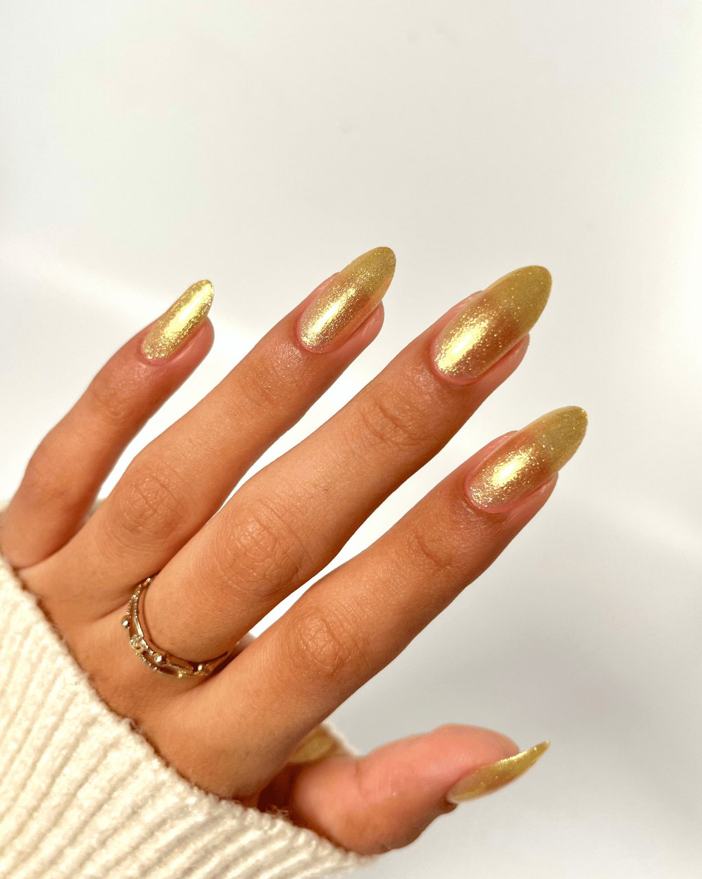 Warm yellow jelly base with iridescent gold crushed flakes - soft sunkissed vibes!